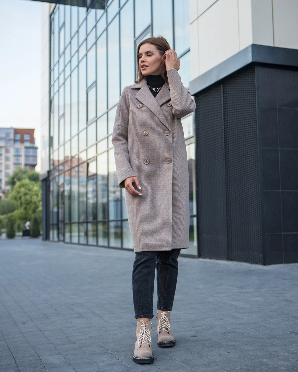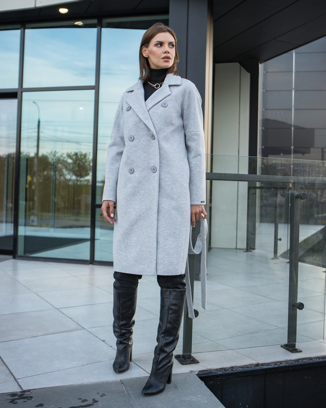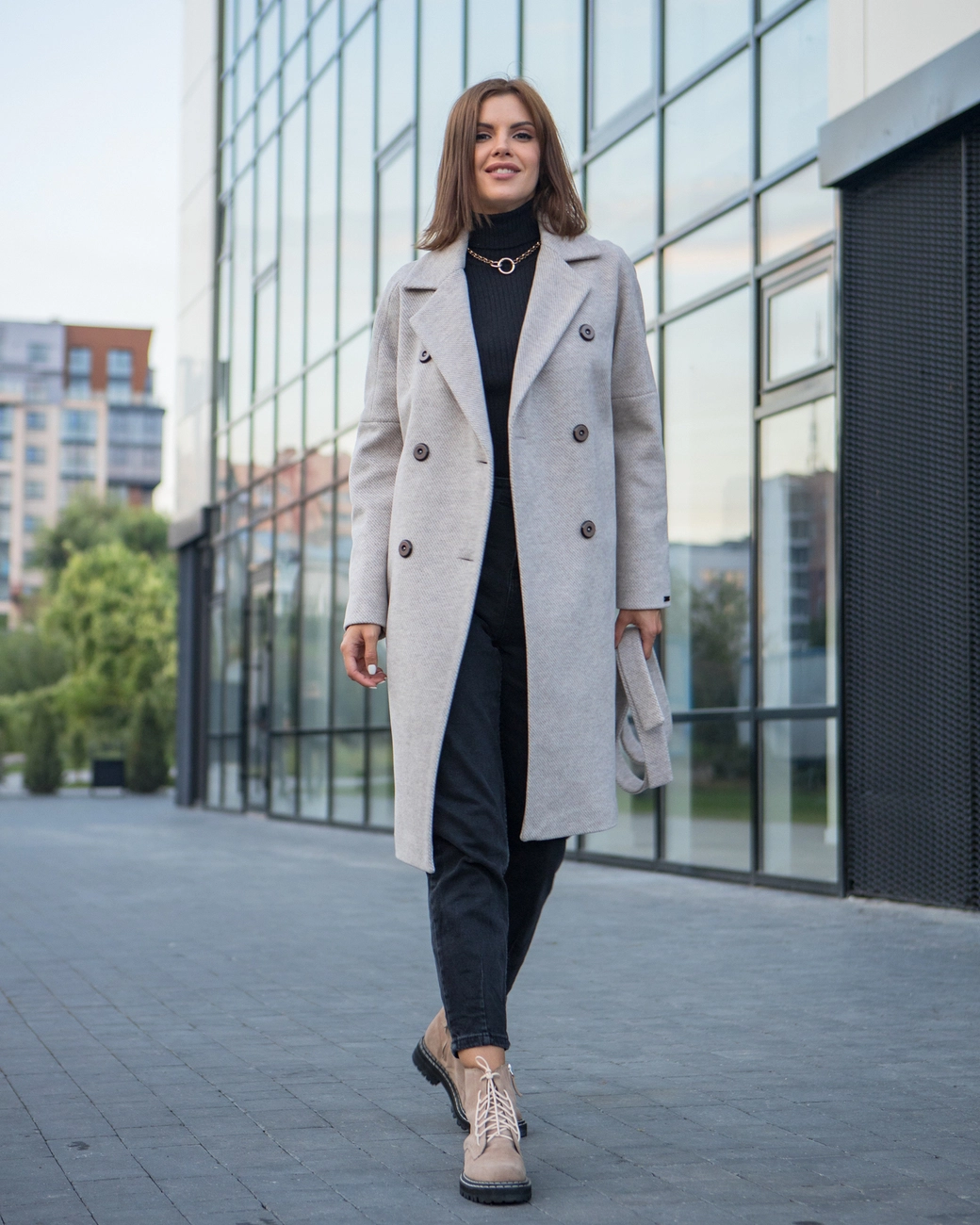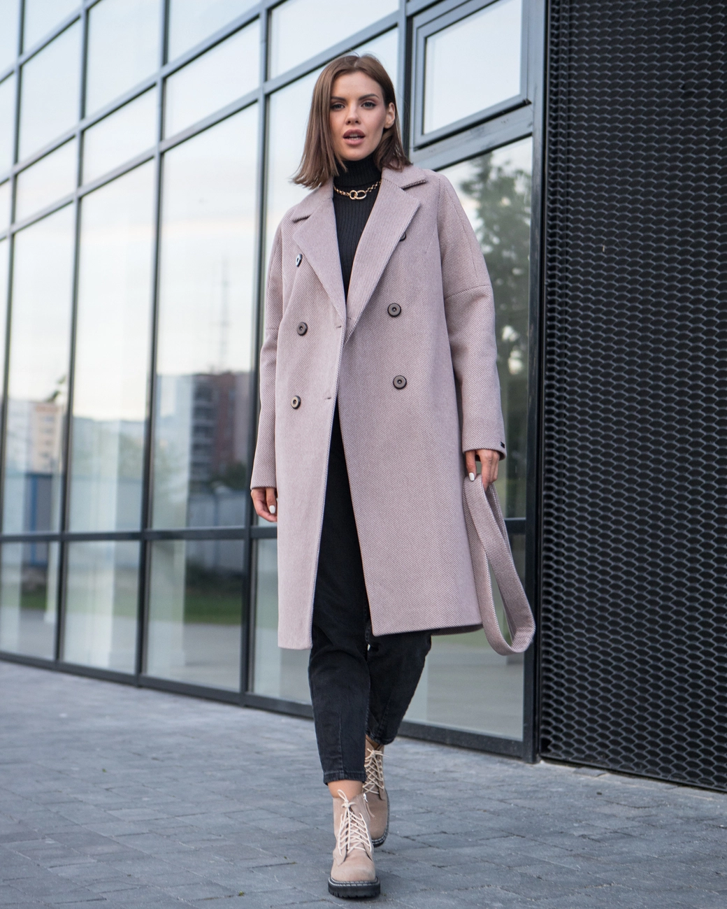 Удлиненное двубортное женское пальто в колено полуприталенного силуэта с опущенной линией плеча. Отлично сочетается со спортивной и классической обувью. Красивая посадка на любой фигуре. Размерный ряд 40-48