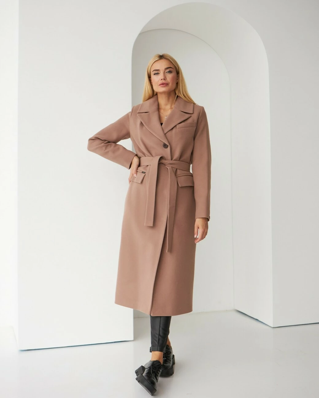Женское удлиненное пальто прямого силуэта со шлицей сзади. В комплекте идет пояс. Отлично сочетается как со спортивной обувью, так и с классической. Размерный ряд 42-48